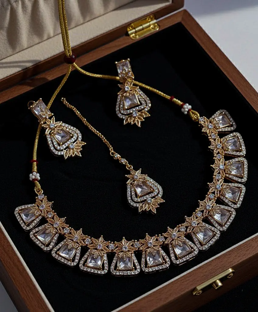 Ideal for weddings, festive events, and special occasions, this lightweight set ensures comfort while making a bold statement. The sparkling silver base paired with soft pink accents creates a delicate yet glamorous contrast, perfect for pairing with sarees, lehengas, gowns, or fusion wear.