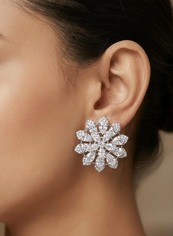 Perfect for gifting, parties, festive celebrations, and daily elegance, these Aesthetic Floral Stud Earrings enhance your jewellery collection with timeless beauty and sophistication. A must-have accessory for women who love subtle sparkle and refined floral designs in their jewellery.