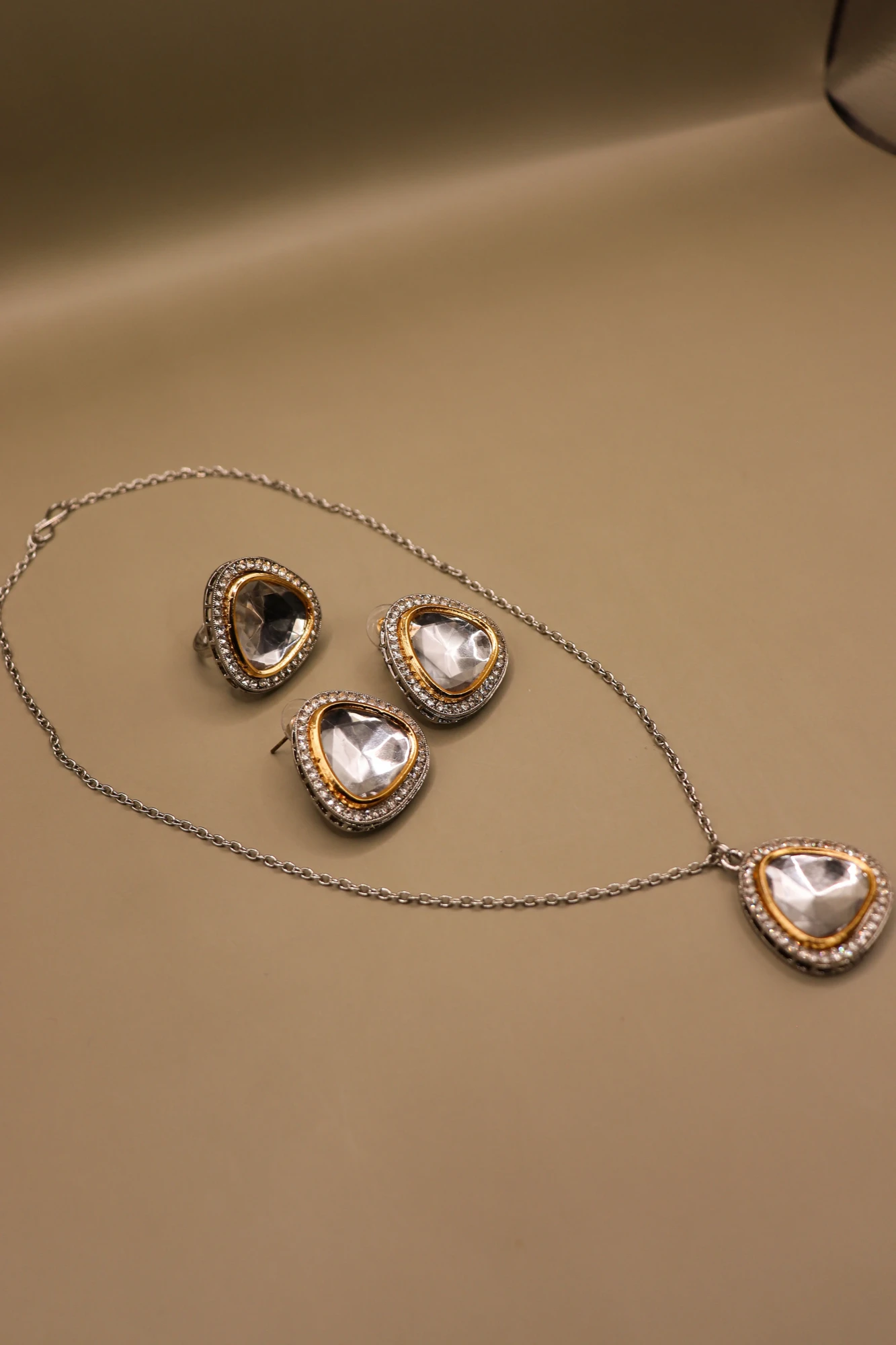 Add refined elegance to your jewellery collection with this Classy Chain Necklace Set in Golden and Silver . Thoughtfully designed, this set includes a beautifully crafted chain necklace paired with matching earrings and a coordinating ring, creating a harmonious and sophisticated look. Its graceful design and subtle detailing make it an ideal choice for women who appreciate understated luxury and timeless style.