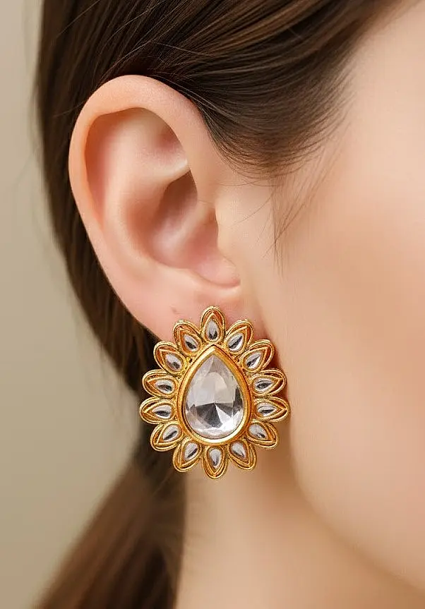 These earrings pair beautifully with sarees, lehengas, anarkalis, and other ethnic outfits, adding timeless beauty and grace to every ensemble. Lightweight and comfortable for extended wear, they are ideal for women who appreciate traditional craftsmanship combined with contemporary style. Perfect for bridal jewellery and festive jewellery collections, these Designer Kundan Earrings in Silver and Golden elevate your ethnic wardrobe with elegance, sophistication, and enduring appeal.