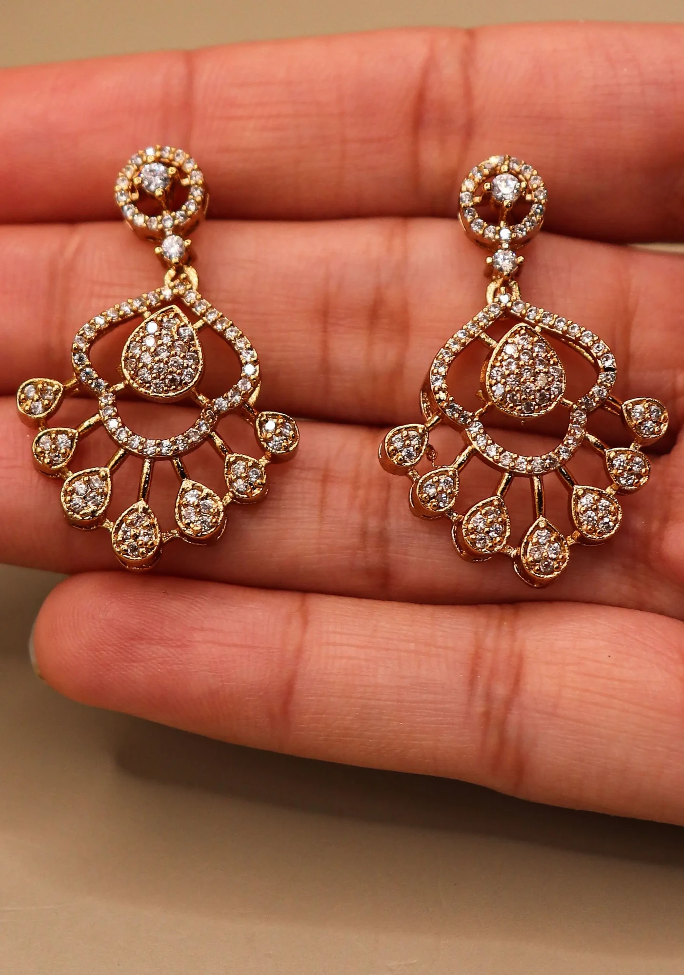 Add a touch of luxury and elegance to your jewellery collection with these Golden Earrings with AD Touch. Expertly crafted, these earrings feature a polished golden finish complemented by sparkling American diamonds, creating a radiant and sophisticated look. Perfect for both festive occasions and special events, they bring a refined shimmer that enhances every outfit.