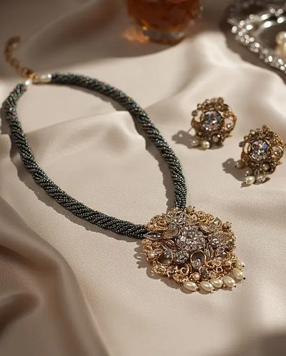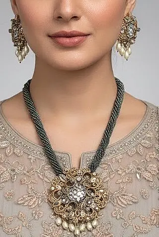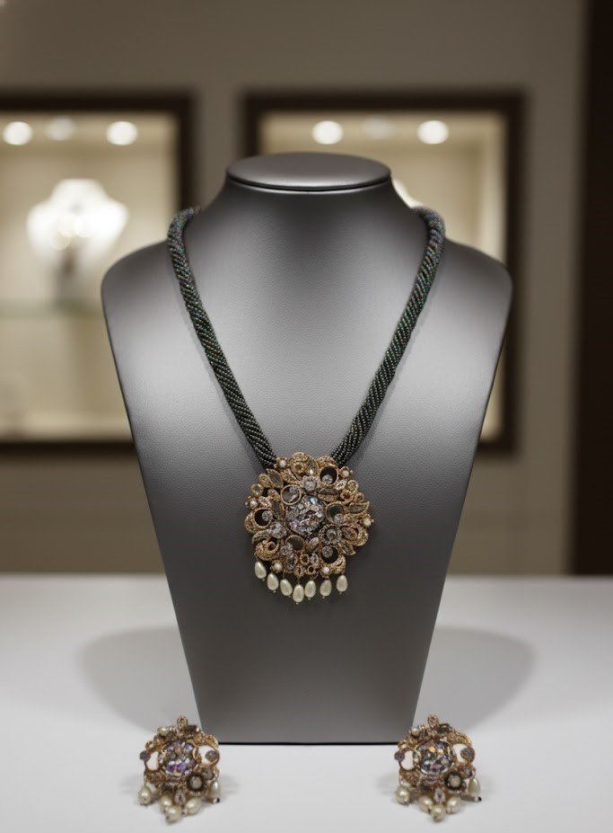 Ideal for festive occasions, formal events, parties, and even fusion styling, this mala pairs beautifully with sarees, kurtis, gowns, and contemporary outfits. The rich grey tone adds depth and sophistication, making it a versatile statement piece for both day and evening looks.
