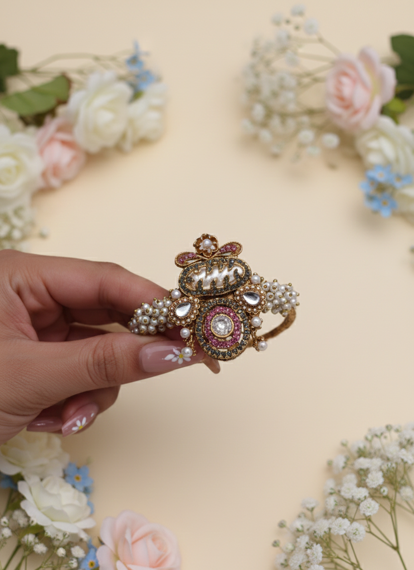 This elegant pearl kara is ideal for weddings, parties, festive events, and formal gatherings. It pairs effortlessly with both eastern and western outfits, enhancing your overall style with subtle glamour. Whether you’re dressing up for a celebration or adding a refined touch to your everyday look, the Pink and Grey Oval Pearl Kara is a versatile accessory and a perfect gifting option for birthdays, anniversaries, and special moments.
