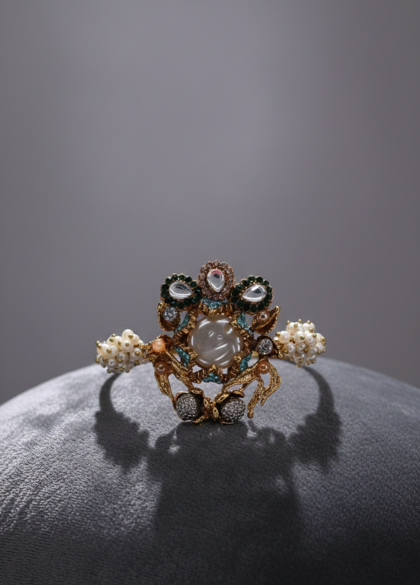 The Turkish Gajra in Green is an elegant bracelet that beautifully blends traditional design with modern sophistication. Crafted with high-quality Turkish pearls, this gajra-style kara features a vibrant green shade that adds a refreshing and graceful touch to your wrist. Its smooth texture, polished finish, and lightweight design make it a comfortable yet eye-catching accessory for any occasion.