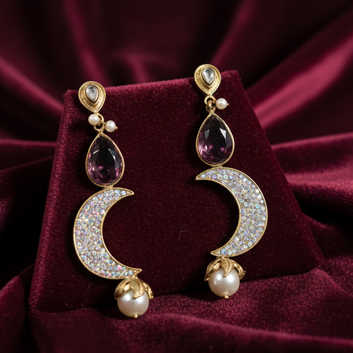 Perfect for festive occasions, celebrations, or statement styling, these earrings beautifully complement both ethnic and contemporary outfits. The rich purple shade symbolizes creativity, confidence, and luxury — making it an ideal color to elevate your ensemble with bold sophistication. Whether paired with flowing gowns, traditional dresses, or modern attire, Turkish Purple Moon Earrings add a graceful glow to your look. More than just accessories, they capture the magic of heritage and design, reflecting individuality, beauty, and timeless fashion in every detail.