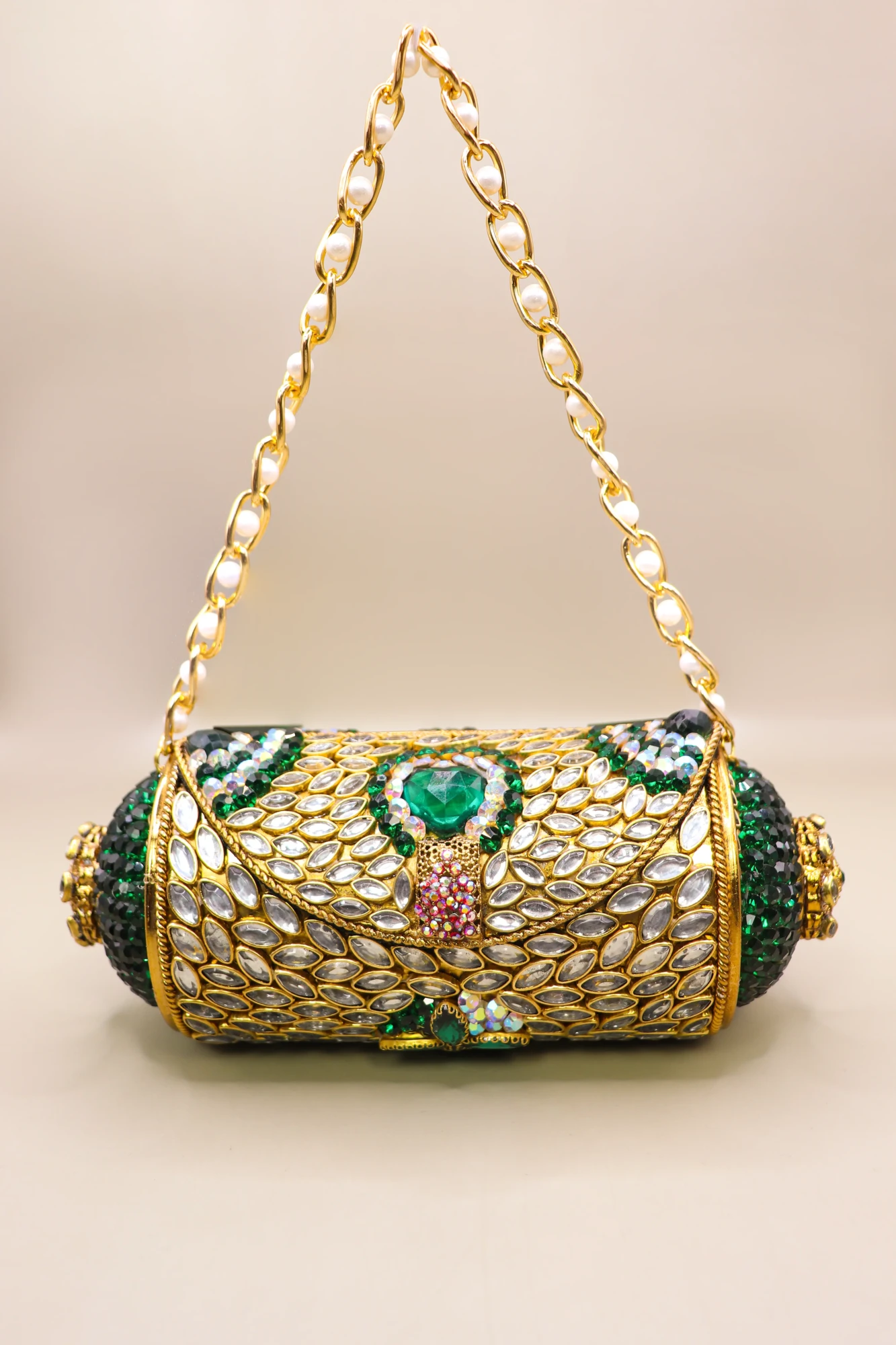The Turkish Royal Cylinder Clutch embodies luxury, sophistication, and timeless Turkish craftsmanship, making it an exquisite accessory for those who appreciate regal style. Inspired by the grandeur of Ottoman artistry and modern fashion sensibilities, this clutch features a refined cylindrical design that exudes elegance and exclusivity. Its royal appeal instantly elevates any ensemble, setting it apart from conventional clutch designs.