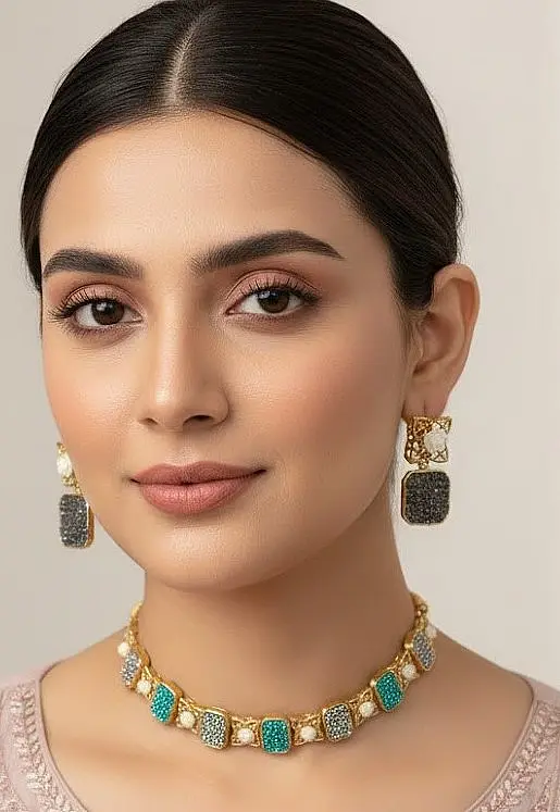 This Sea Green Turkish Stone Choker is ideal for women who love elegant, versatile, and statement-making jewellery that combines timeless beauty with contemporary style.