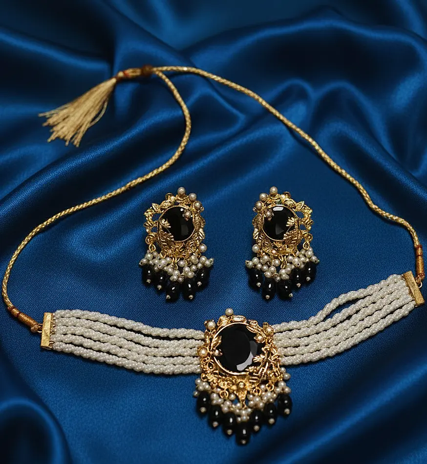 The rich black pearls provide a bold yet classy statement, making this choker set a versatile and luxurious addition to your jewellery collection. Stand out with timeless elegance and refined charm wherever you go.